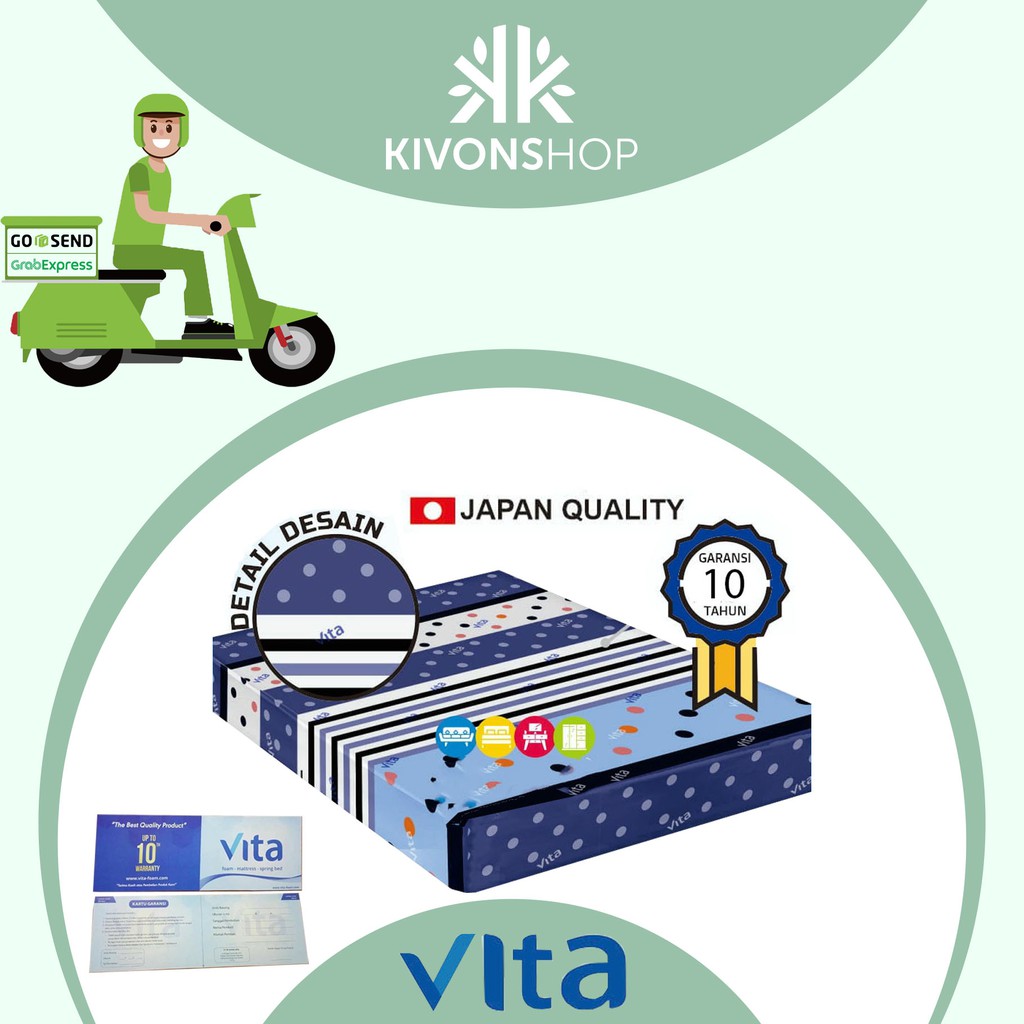 SELAMAT DATANG DI TOKO KIVONSHOPTOKO YANG MENJUAL BERBAGAI KEBUTUHAN RUMAH ANDA DENGAN HARGA SUPER MURAH DAN 100% ORIGINAL BERGARANSI RESMIAPA SI KEUNTUNGAN BELI DI KIVONSHOP JURAGAN??1, PRODUK DI PASTIKAN ORIGINAL2, PRODUK BERAT NON VOLUME (JAMINAN HARGA ONGKOS KIRIM LEBIH MURAH DARI TOKO SEBELAH)3, PRODUK SELALU DI QUALITY CONTROL SEBELUM DI KIRIM4, PRODUK DI JAMIN PACKING AMAN5, (JAMINAN BEDA DARI TOKO LAIN!!!) PRODUK DI ASURANSIKAN SECARA GRATIS TANPA DI PUNGUT BIAYA DARI KONSUMEN, JADI KETIKA RUSAK DI PERJALANAN BISA DI CLAIM YA KAKAK :DPROMO KASUR LIPAT INOAC VITA FOAM ORIGINAL JAPAN (BUKAN BUSA YANG GAMPANG KEMPES)GARANSI RESMI 10 TAHUNukuran : 90cm x 200cm x 15cm 120cm x 200cm x 15cm-KARTU GARANSI 10 TAHUN ( UNTUK GARANSI KEMPES )-KEADAAN PAKET DALAM POSISI DI VACUUM-UNTUK MOTIF KAMI KIRIMKAN RANDOM / MULTICOLOR- KEPADATAN DENSITY 23/PALING TINGGI (Urutan kepadatan dari yang terpadat/tersolid 23,20,16)- TIDAK CEPAT AMBLAS- BAHAN BUSA BERTEKNOLOGI TERBARU DARI JEPANG (Warna busa