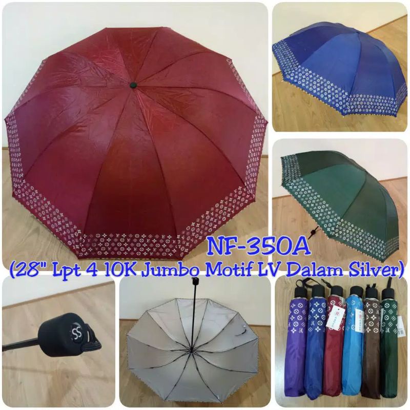 Mohon luangkan waktu sedikit untuk membaca deskripsi secara teliti dan cermat agar tidak salah dalam berbelanja‼️PENTING‼️Diwajibkan Setiap Pembukaan Packing Melakukan Video Unboxing. Jika Barang Rusak/Kekurangan Barang Akan Di Validasi Melalui Video. Jika Tidak Ada Bukti Video Unboxing Maka Dianggap Tidak Sah Untuk Mengajukan Komplain Maupun Resolusi.Payung lipat 3 jumbosuper besar untuk ukuran payung lipat ukuran seperti payung golfdengan motif LV dan berbahan kain pongee berlapis silver dibagian dalam yang berfungsi sebagai anti UV KUAT: bukan payung abal-abal dengan rangka hitam yg dipanjangi menjadi 4 lantai. rangka hitam 10 jari menambah kekokohan payung. dengan rangka hitam membuat payung menjadi anti KARAT dan menggunakan sistem lipatan ANTI ANGIN sehingga bila payung tertiup angin tidak patah.Mempunyai dimensi payung :- Panjang dalam kondisi tertutup/terlipat: 30 cm- Diameter payung bila dibuka mencapai 120cm - Panjang tiang rangka payung bila ditarik/dibuka mencapai 75cmDengan mempunyai ukuran begitu maka payung ini bisa digunakan hingga menutupi 3 (TIGA) orangWarna yang tersedia :-Maron-Ijo Botol/army-Coklat-Biru-Navy-Ungu-RandomPengertian warna random adalah warna akan kami kirim sesuai dengan stok warna yang banyak yang ready artinya tidak dapat kami pastikan warna yang akan dikirim. Kalau buyer ingin pilih warna silahkan klik varian warna yang sudah kami sediakan.Barang yang dikirim akan kami periksa dalam kondisi yang baik, sehingga kami tidak menerima retur barang karena rusak ( diakibatkan oleh pihak expedisi) . tetapi bila buyer mau tukar bisa kami bantu dengan syarat kami tidak menanggung ongkir.Happy Sho