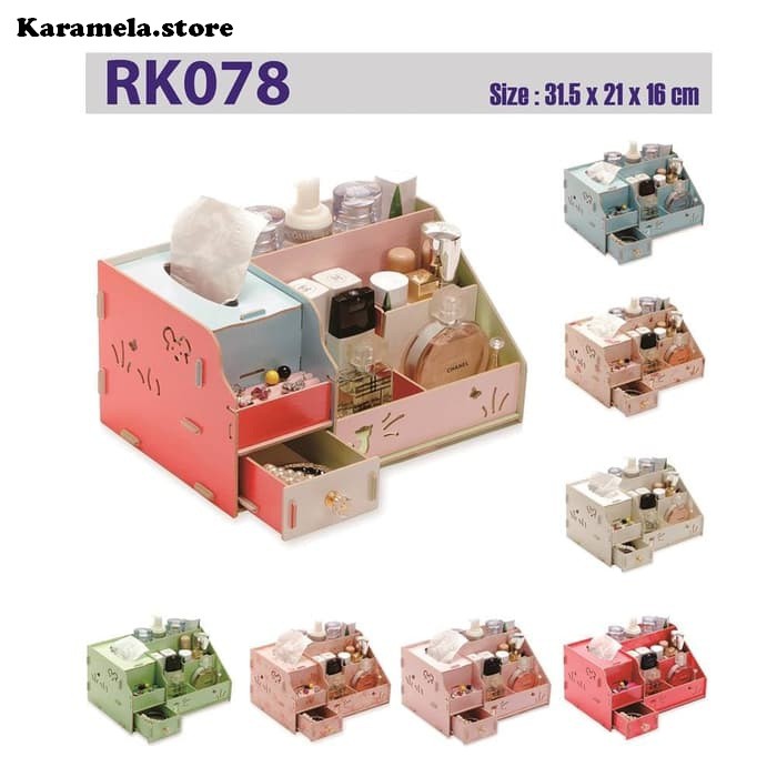 " rak kosmetik kayu kotak tempat makeup bermotif rk078 buatan pabrik - biru rk078 desktop storage rak kosmetik bahan kayu kotak kuas make up kuteksize : 31.5 x 21 x 16.5 cmukuran dus : 36 x 21 x 3.5 cmharap perhatikan size produk. jangan sampai beli murah di toko lain tetapi ternyata dapat ukuran yang lebih kecil. bahan : kayu mdf 3 mmtermasuk : - karet bening penguat- petunjuk pembuatanwarna ready :* biru* camelia* hijau* kombinasi (kombinasi warna mungkin beeda dengan foto karena tergantung stok yang tersedia di pabrik)* pink flower* pink* watermelon redkosong:* putihpilihan warna akan dikirim sesuai variasi yang dipilih ketika order. jika tidak dapat memilih varian maka tulis pilihan warna di kolom catatan / keterangan. tanpa keterangan akan kami kirim random. mohon maaf tidak menerima perubahan variasi warna dari diskusi atau pesan. jika warna yang dipilih habis maka akan kami kirim warna yang ready tanpa konfirmasi terlebih dahulu. beli : setuju.* warna sesungguhnya mungkin dapat beeda. hal ini dikarenakan setiap layar memiliki kemampuan yang beeda-beda untuk menampilkan warna, kami tidak dapat menjamin bahwa warna yang anda lihat adalah warna akurat dari produk.produk rentan pecah, tambahkan pembelian packing kayu di etalase - umum. kami tidak bertanggung jawab atas dus yang rusak / barang yang pecah tanpa menggunakan packing kayu.kami sudah berusaha mengemas produk seaman mungkin namun tidak menjamin barang tidak akan mengalami kerusakan dalam perjalan menuju ke tempat pembeli. oleh karena itu segala kerusakan yang terjadi selama pengiriman diluar tanggung jawab kami. jika ingin lebih aman kami sarankan menambahkan pembelian packing kayu di etalase umum."" cacat minor adalah wajar karena produksi masal. apabila ingin di tukar ongkos kirim penukaran pp ditanggung pembeli "" #Rak #Kosmetik #RakkOSMETIK SELAMAT DATANG DI KARAMELA SHOPINFO TOKO :~ REAL PICT~ SEMUA PRODUK READY STOCK~ PENGIRIMAN SENIN - SABTU~ ORDER SEBELUM JAM 16.00 DIKIRIM HARI YANG SAMAHari Minggu/Libur Nasional Toko Li