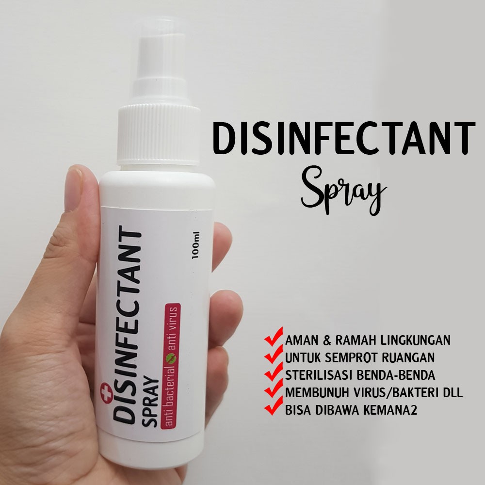 Disinfectant Spray. ini bukan hand sanitizer ya ukuran 60ml atau 100ml jadi lebih mudah dibawa kemana2.Bisa langsung digunakan, tinggal semprot2 aja dalam ruangan, mobil atau halaman..Ramah lingkungan Untuk membunuh bakteri, virus, kuman dllSemprotkan ke daerah yg akan dibersihkan, diamkan sesaat, lap dengan kain bersihArea rumah, kantor, taman, meja, pegangan pintu, toilet, dllBahan aktif Benzalkonium choride zat yang efektif untuk menghentikan pertumbuhan beberapa jenis bakteri, virus, atau jamur yang dapat membahayakan tubuh.Menghambat dan membunuh pertumbuhan mikroorganismeMencegah terjadinya pencemaran bakteri atau virus penyebab infeksisehat dimulai dari diri sendiriNB: untuk kemasan / botol tergantung persediaan tidak selalu sama dengan foto ya harap maklum#disinfectant #disinfektan #desinfektan #disinfectantspray #disinfectan